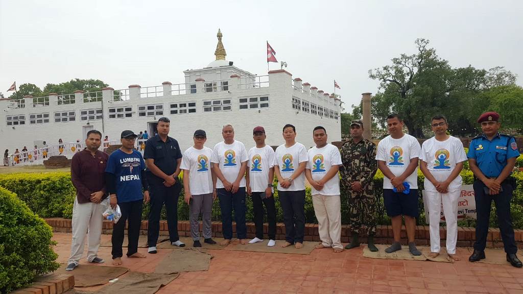 A large number of yoga enthusiasts and followers gathered at Lumbini Square in Nepal to participate in various yoga poses